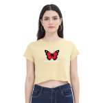 Crafted from premium cotton lycra and bio-washed for a soft, luxurious feel, this crop top features a unique design of Admiral butterfly with “Be bold, Be REBEL ” written over them. Available in Beige and sizes from Small to Extra Large, it combines comfort with a bold, stylish statement.